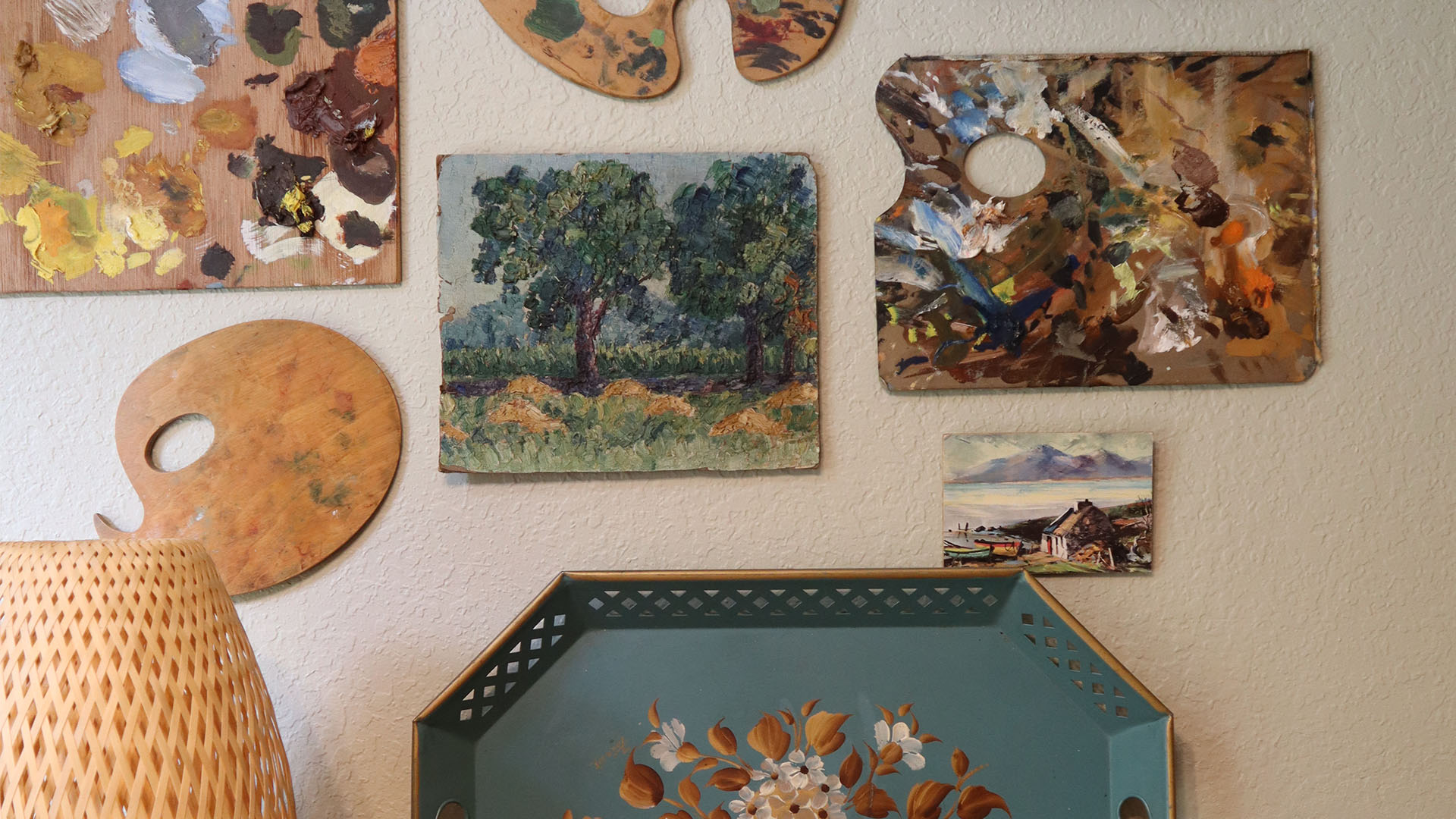 Love the bright colors on this vintage handmade game board! Originally used to play the marble game Aggravation or Wahoo in the mid-1900’s. Now it looks great as an eye-catching piece of art. Might be fun to dig out some marbles and play a round!